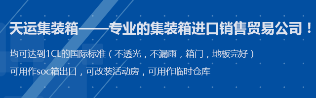 符合國際:箱標(biāo)準(zhǔn),可用作倉庫和海運及鐵路運輸?shù)鹊?!誠信經(jīng)營、數(shù)量充足、價格優(yōu)惠。公司在中國各大港口(如青島、天津、上海、深圳等均有大批量庫存),在中國香港、韓國、新加坡、東南亞、非洲、歐洲等形成不斷完善的貿(mào)易網(wǎng)絡(luò)。